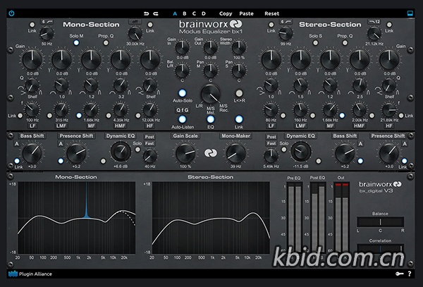 还在为混音缺乏立体深度而头疼?bx_digital V3 绝非普通均衡器,它是手术刀级的立体声操控大师!这款由 Brainworx 打造的母带级神器,以颠覆性的 Mid/Side 处理技术为核心,让你独立雕琢单声道核心与立体声场。独特的三段式均衡配以精密"Tilt"音色倾斜控制,搭配一键低频单声道化(Monobass)和超低频噪音铲除(BassDump),彻底解决相位难题。更可自由伸缩声场宽度,为不同音轨注入模拟饱和质感——从人声总线空气感到鼓组冲击力,一键解锁专业级混音张力。母带终极武器,现已降临!