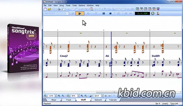 Take the Video Tour Songtrix Gold 3.0 supports musicians in the same flexible and open-ended way that a word processor supports writers. Compose a chord sequence and apply styles to produce a professional musical arrangement in seconds. Or create your own masterpiece from scratch, using intuitive events like strums and drum rolls for rapid drafting and refinement of musical ideas. Explore new and original harmonic progressions for your music, compile and print staff notation instantly. Then take your completed songs to the world by publishing them securely on the ChordWizard Network, or just share your songs privately with friends and collaborators who can view, play and print them with the free Bronze Edition.